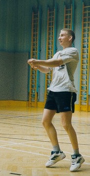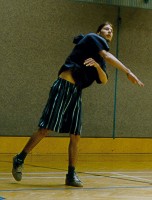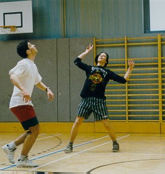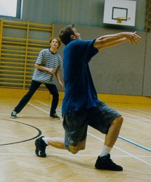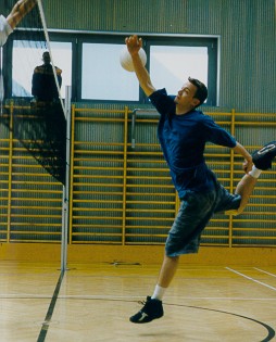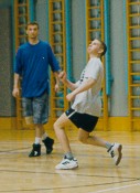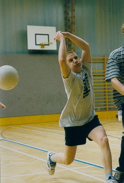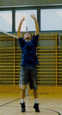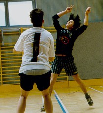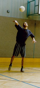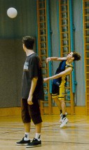 Andi übt das "Baggern" und probiert es gleich aus... |